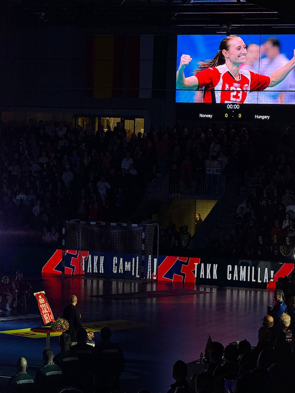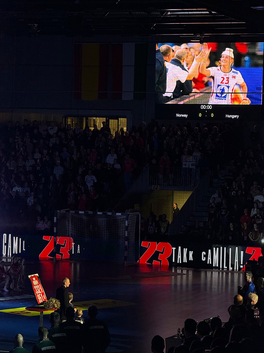 Vi fekk vere vitne til at Camilla Herrem vart takka av for si karriere på landslaget, tatt bilde saman med Gro Hammerseng-Edin, og sanka autografar frå store deler av landslaget.